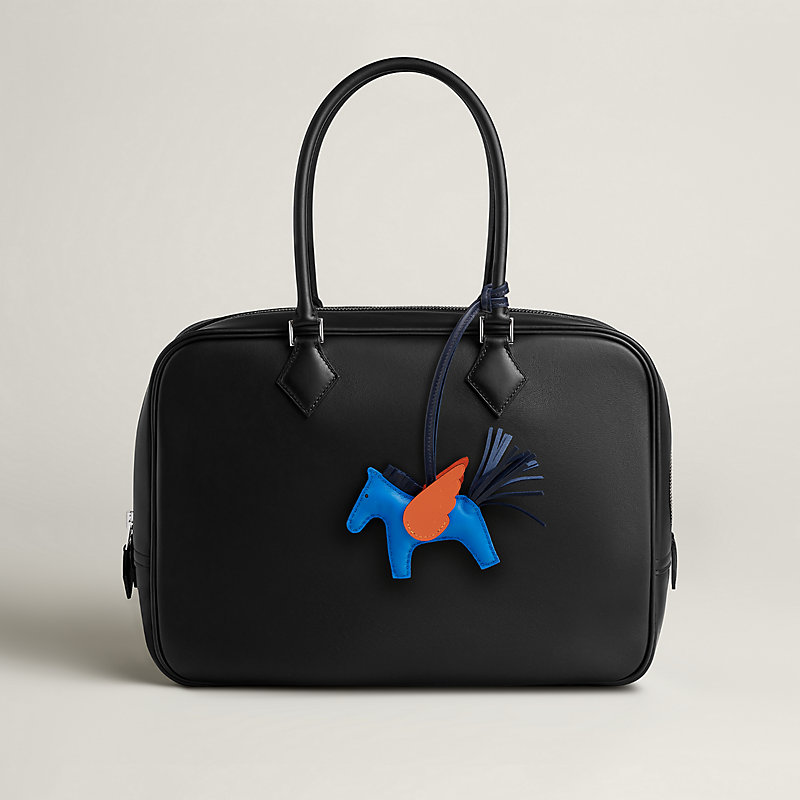 Created using the glovemaker’s expert craftsmanship, this bag accessory in Milo lambskin and Swift calfskin evokes the equestrian world beloved by Hermès. Whether a colorful horse or winged Pegasus, it combines soft leather with contrasting colors between the saddle, wings, mane and tail. All that's left to do is to tie it around a bag handle to add a touch of fantasy to everyday life, and imagine yourself riding towards new horizons.