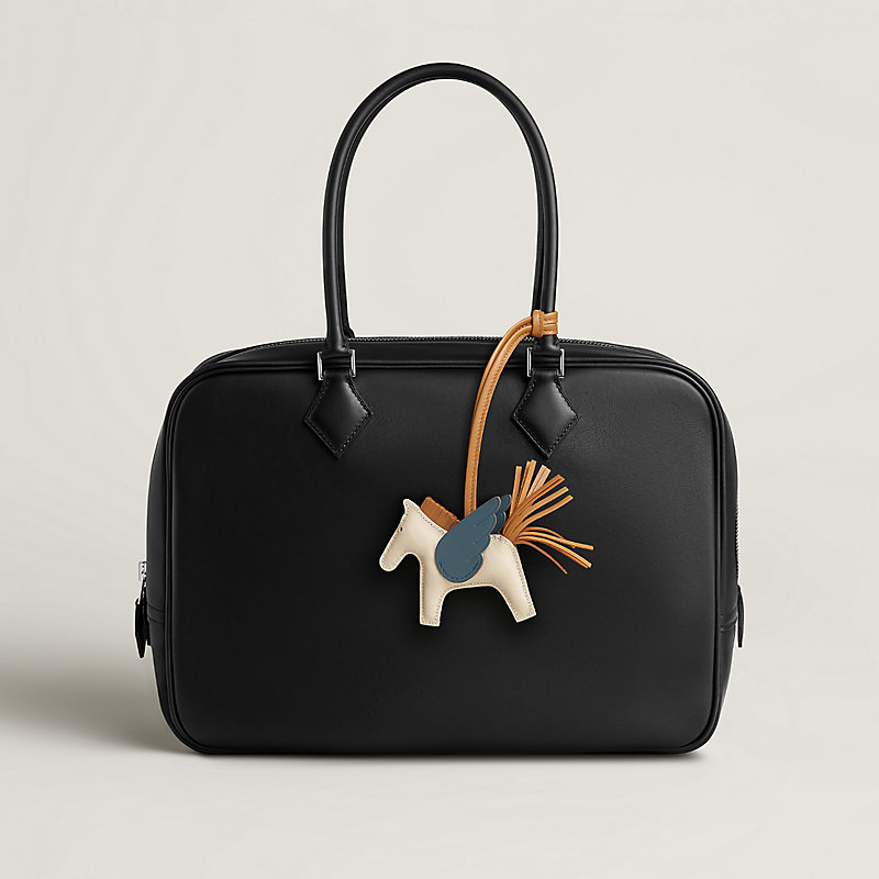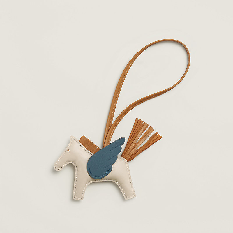 Created using the glovemaker’s expert craftsmanship, this bag accessory in Milo lambskin and Swift calfskin evokes the equestrian world beloved by Hermès. Whether a colorful horse or winged Pegasus, it combines soft leather with contrasting colors between the saddle, wings, mane and tail. All that's left to do is to tie it around a bag handle to add a touch of fantasy to everyday life, and imagine yourself riding towards new horizons.