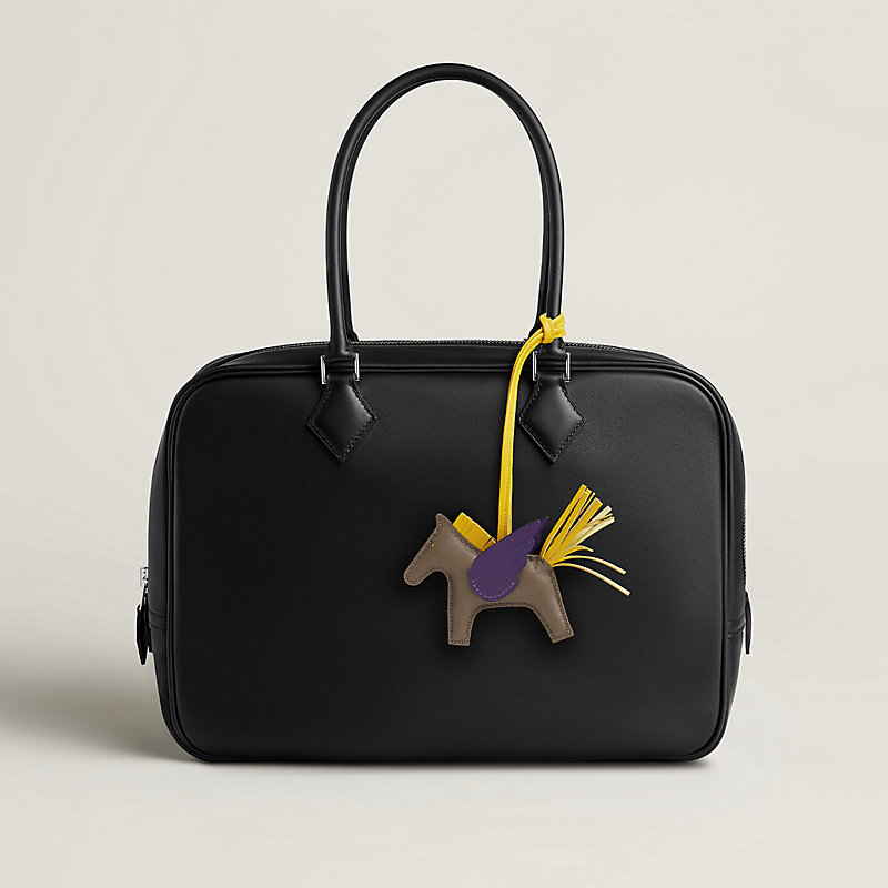 Created using the glovemaker’s expert craftsmanship, this bag accessory in Milo lambskin and Swift calfskin evokes the equestrian world beloved by Hermès. Whether a colorful horse or winged Pegasus, it combines soft leather with contrasting colors between the saddle, wings, mane and tail. All that's left to do is to tie it around a bag handle to add a touch of fantasy to everyday life, and imagine yourself riding towards new horizons.