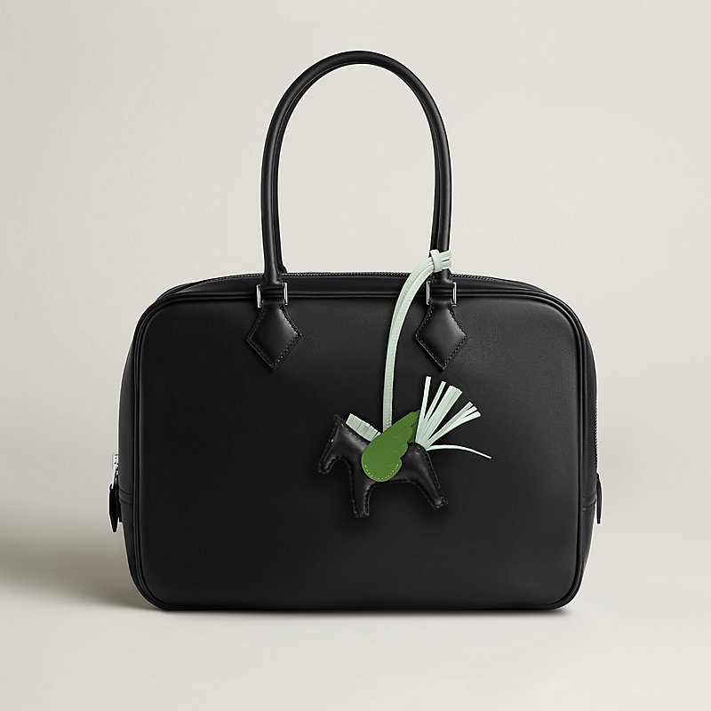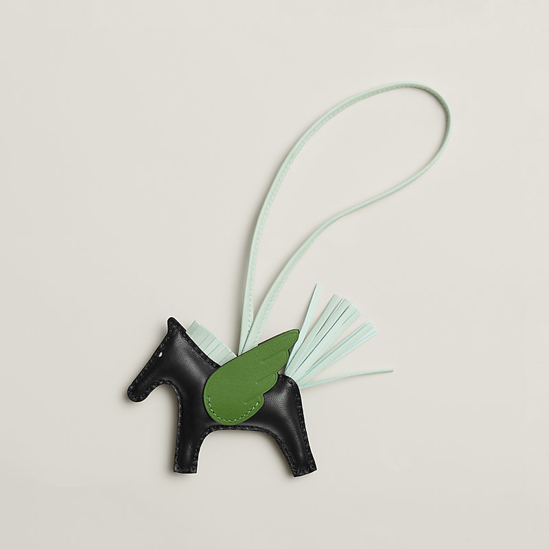Created using the glovemaker’s expert craftsmanship, this bag accessory in Milo lambskin and Swift calfskin evokes the equestrian world beloved by Hermès. Whether a colorful horse or winged Pegasus, it combines soft leather with contrasting colors between the saddle, wings, mane and tail. All that's left to do is to tie it around a bag handle to add a touch of fantasy to everyday life, and imagine yourself riding towards new horizons.