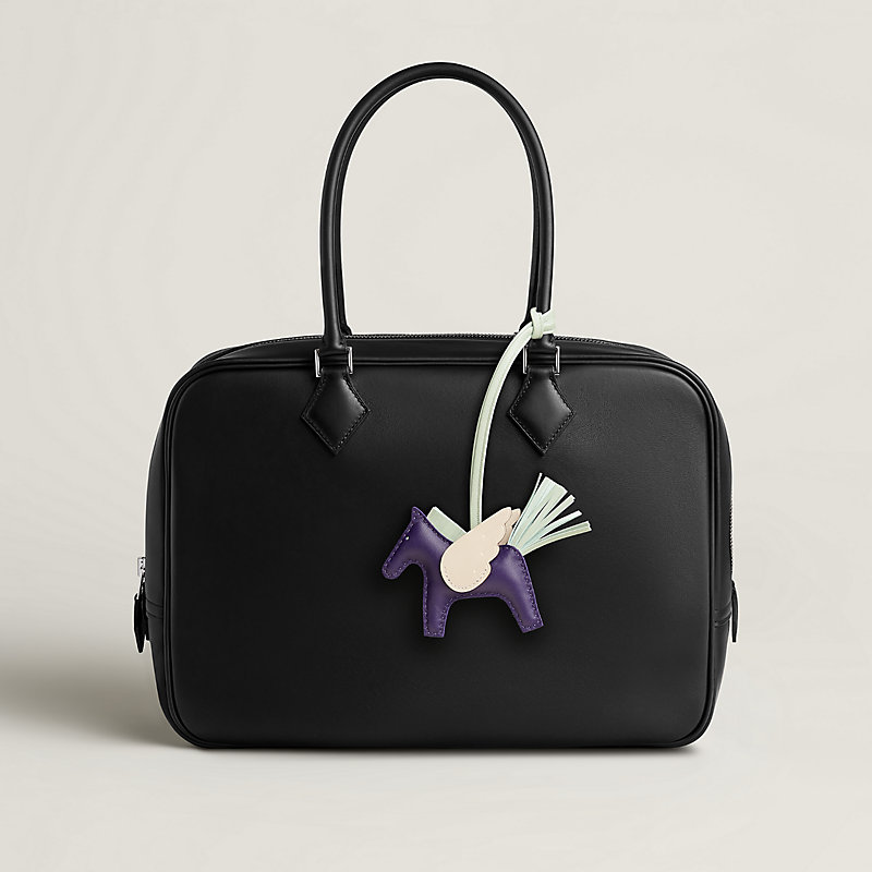 Created using the glovemaker’s expert craftsmanship, this bag accessory in Milo lambskin and Swift calfskin evokes the equestrian world beloved by Hermès. Whether a colorful horse or winged Pegasus, it combines soft leather with contrasting colors between the saddle, wings, mane and tail. All that's left to do is to tie it around a bag handle to add a touch of fantasy to everyday life, and imagine yourself riding towards new horizons.