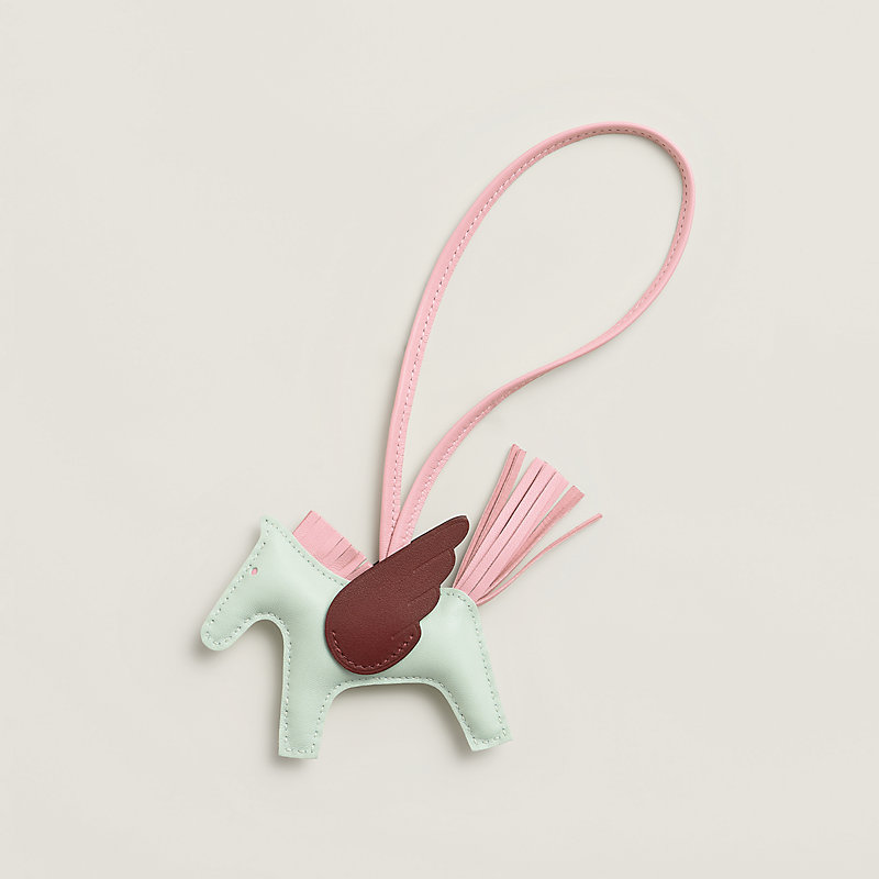 Created using the glovemaker’s expert craftsmanship, this bag accessory in Milo lambskin and Swift calfskin evokes the equestrian world beloved by Hermès. Whether a colorful horse or winged Pegasus, it combines soft leather with contrasting colors between the saddle, wings, mane and tail. All that's left to do is to tie it around a bag handle to add a touch of fantasy to everyday life, and imagine yourself riding towards new horizons.