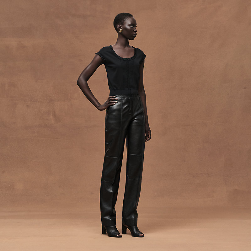 Short-sleeve sweater in silk knit and cotton with thin cable stitch (50% silk, 38% cotton, 9% polyamide, 3% elastane)