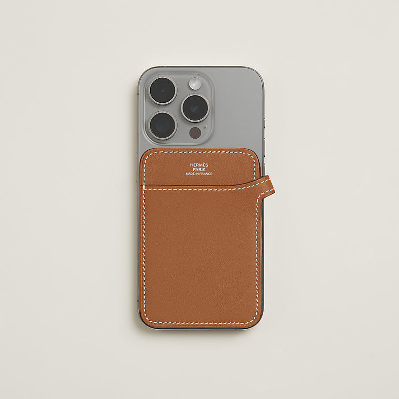 Stand MagSafe card holder in Gold Swift Calfskin.