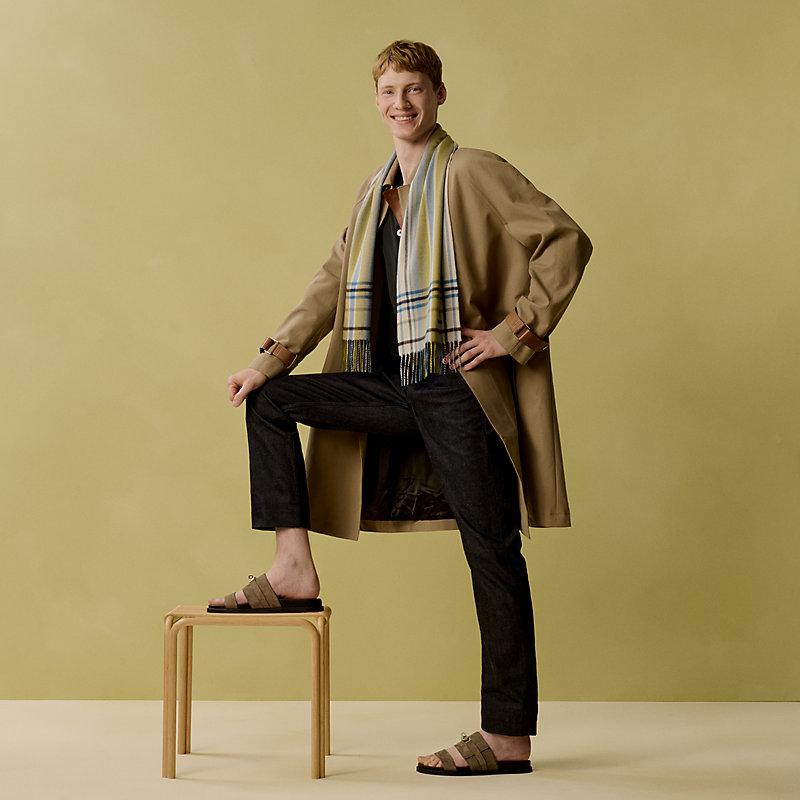 Woven from ultra-soft cashmere, this compact scarf displays a timeless tartan motif, revisited in an understated or cheerful color scheme.