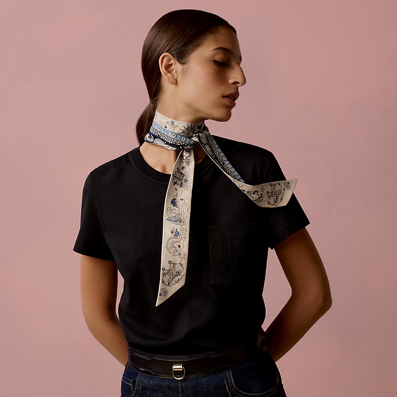 Neptune's horses, Hercules' columns, perilous reefs, Bear Island... Many references to seafaring tattoos and ancient maps featuring fantastical animals. The bandana motifs circle around sirens, dolphins and galleons: the iconic bandana identity is reinvented in a shiny and festive summer spirit.