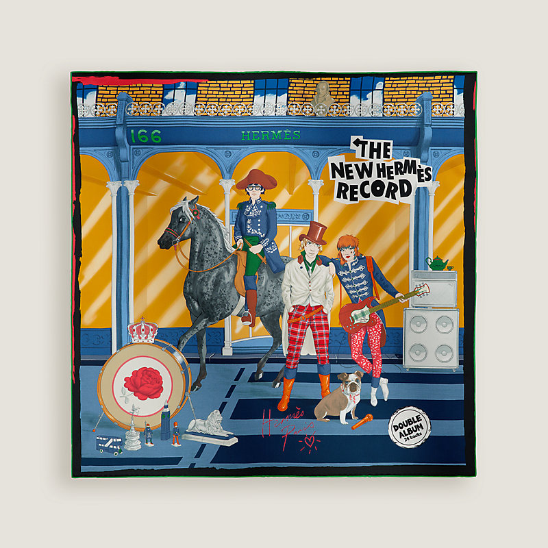 On the cover of Hermès' new album, the entire British pop scene has gathered in front of the upcoming London store on New Bond Street. Dark glasses and jackets with frog fasteners, the Hermès artificier perched on a horse with a bleached mane has traded his customary flags for drumsticks. The bulldog, displaying its legendary stiff upper lip, is a true British icon. Jonathan Burton's vibrant and playful artistry immerses us in the rhythm of English time, under the iconic gaze of Big Ben.