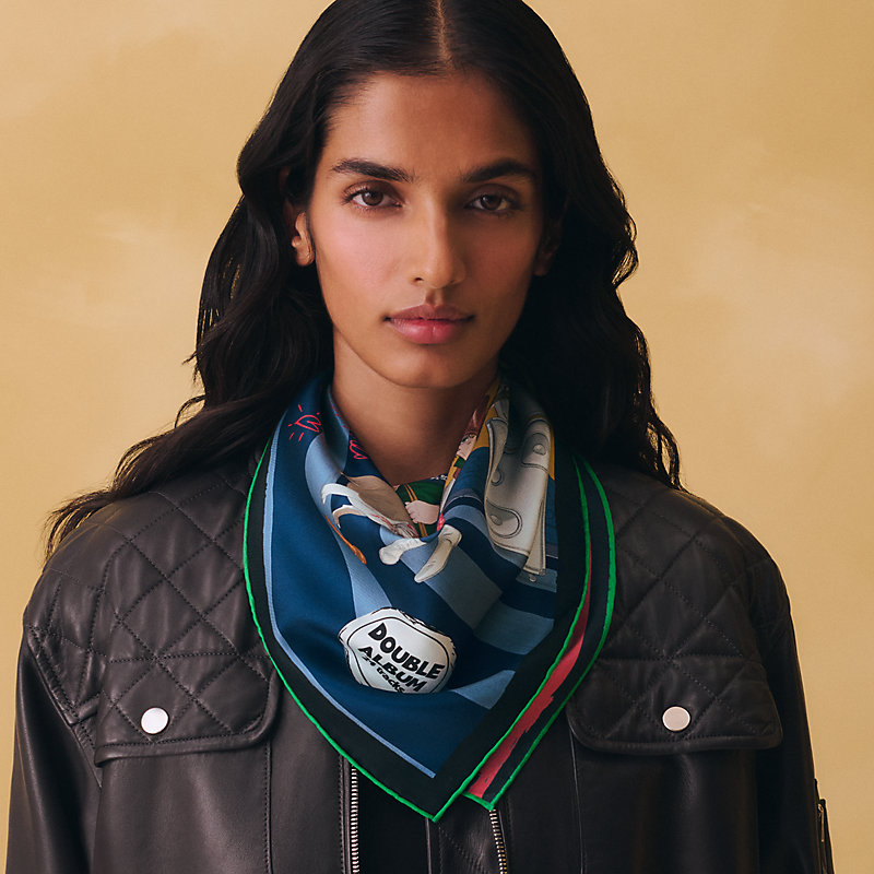 Immerse yourself in captivating silk, where a sense of lightness, boldness and boundless playfulness intertwine. The 70 scarf is modern and effortless, with its versatile, creative and playful ways of wearing.
