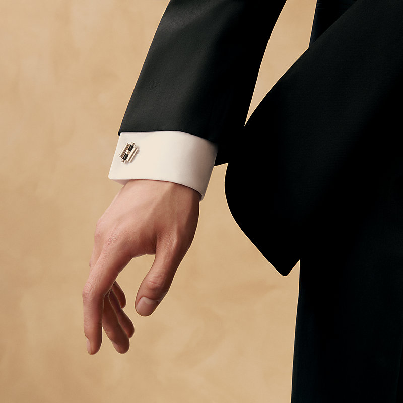 The Tournis Tresse cufflinks reveal a subtle "H". It celebrates leather braiding know-how.