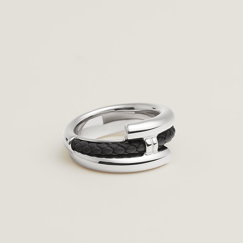The Tournis Tresse ring reveals a subtle "H" that wraps around the finger. It celebrates leather braiding know-how.