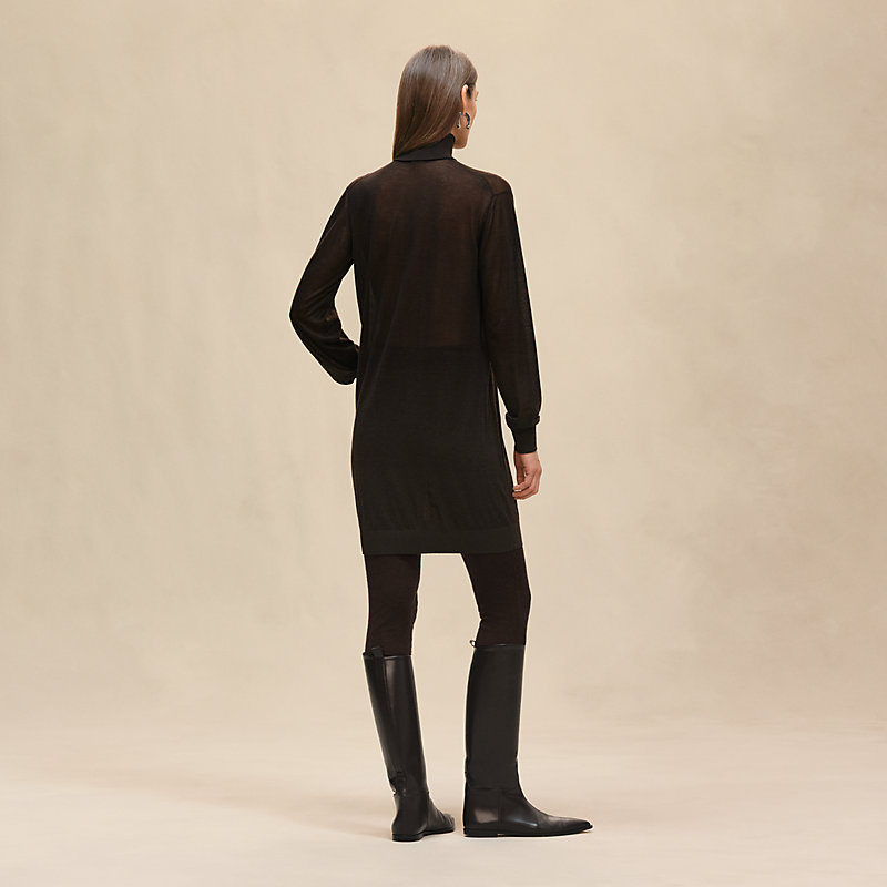 Tunic dress in light cashmere and silk plain knit (70% cashmere, 30% silk)