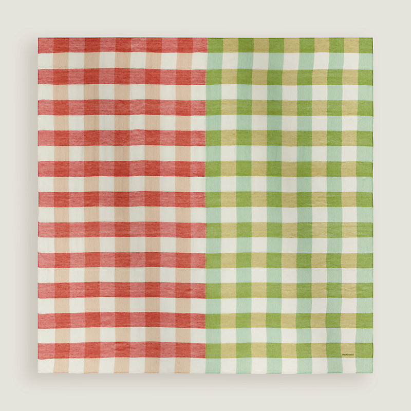 Handwoven from feather-light cashmere and silk, an interplay of colorful stripes brings the Vichy motif to life. The flowing lightness of this delicate scarf makes it the perfect summer ally!