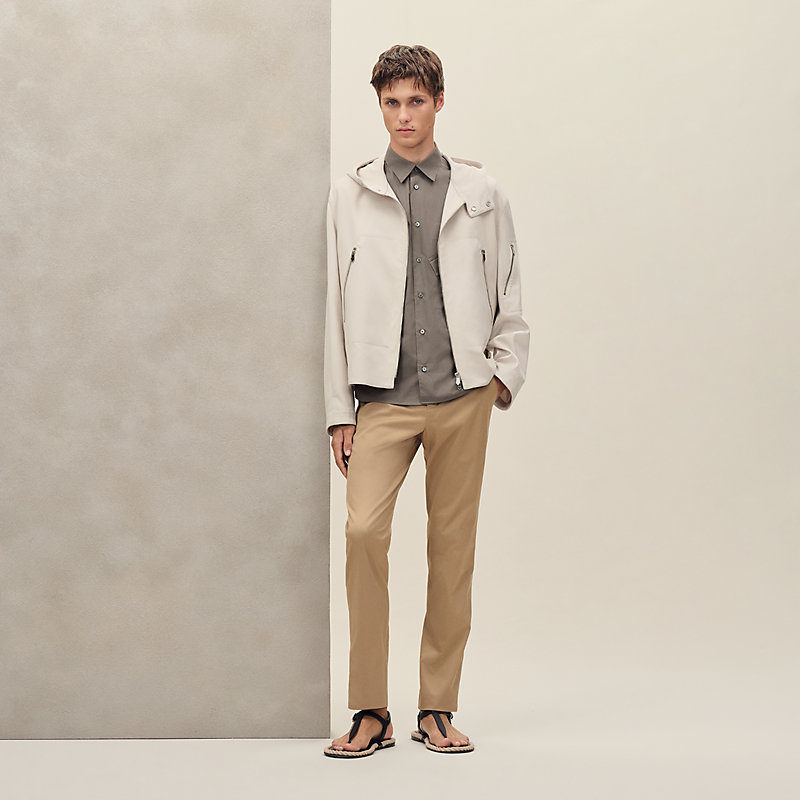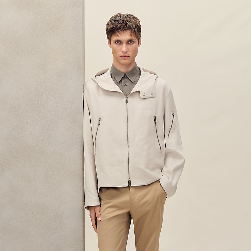 Zipped hooded jacket in cotton and silk double crepe (84% cotton, 14% silk, 2% elastane)