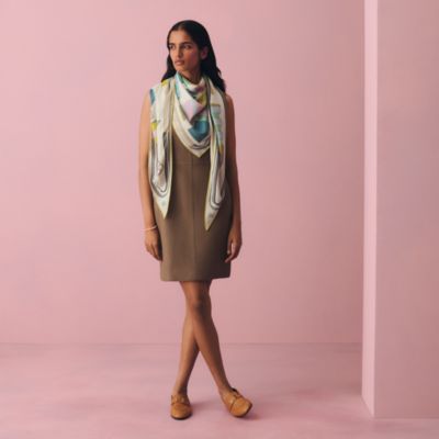 深入爱马仕丝巾世界,感受它的缤纷、轻盈与感性。随心搭配,风格百变:标志性方巾适合搭配丝巾扣佩戴,尺寸较大的披肩则可通过系结演绎创意造型。光泽动人的长方巾和头巾则可饰于颈间和秀发,呈现万千种毫不费力的优雅风格。