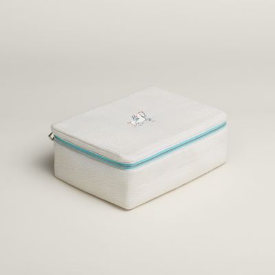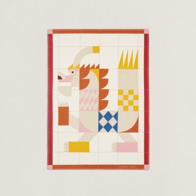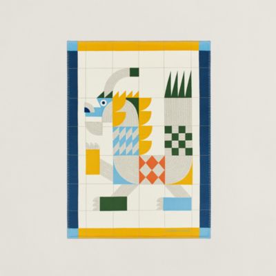 艺术家任通设计的顽皮动物们享受着明媚阳光,跃然于沙滩包的精美刺绣之上。