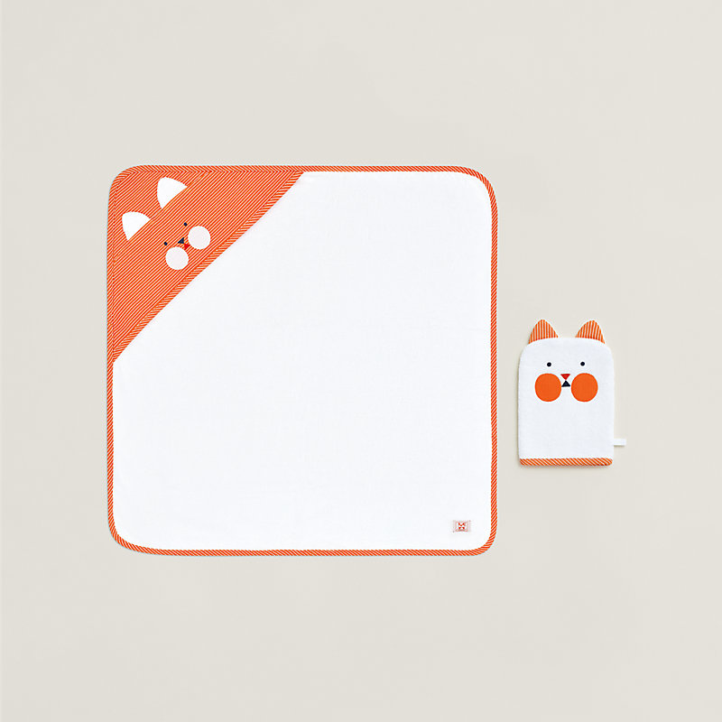 沐浴配具,含浴袍和小方巾,饰有“动物部落”刺绣图案。