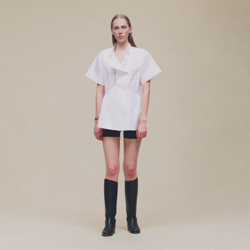 - 合身腰头配有松紧抽绳、滚珠和镀钯绳扣