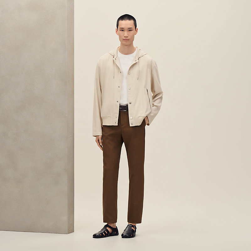 这件服装所使用的面料经过悉心挑选。为使衣服的品质持久如新,我们建议您阅读缝在衣服内里的保养说明标签,并将衣服交给专业人员或爱马仕专卖店进行保养。如有任何问题,请通过电话或点击“联系我们”以电子邮件的形式与我们客服联系,您也可以直接前往我们的专卖店垂询。