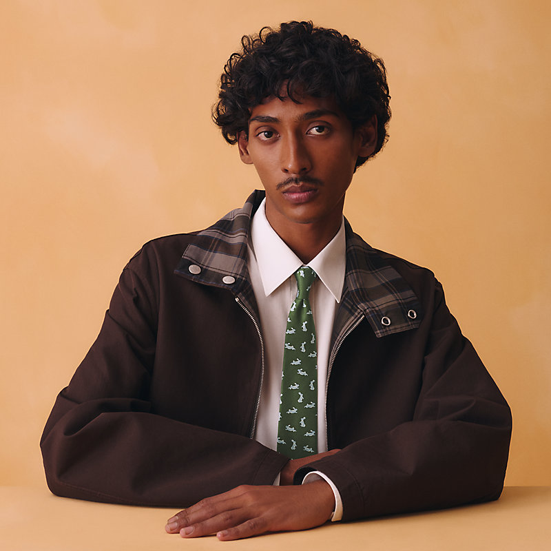 手工缝制斜纹真丝领带(100%桑蚕丝)。这件蕴含创意巧思的作品饰有令人惊喜的细节,佩戴这款精美领带,让一切皆有可能。仅有一条规则:享受佩戴它的乐趣!自1949年以来,位于法国里昂的爱马仕工匠以精湛技艺,精心制作爱马仕领带。/自1949年以来,爱马仕领带由位于法国里昂的工匠以精湛技艺制作而成。