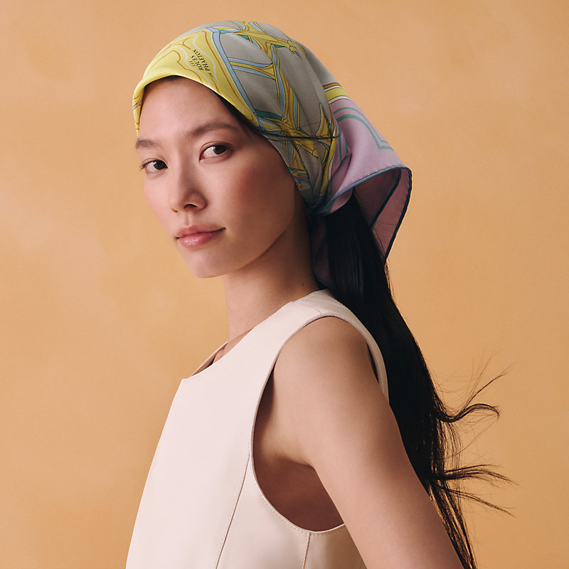 轻盈、大胆和无穷无尽的俏皮感在方巾中交织碰撞,让自己沉浸于质感迷人的丝绸之中。以多变、创意和俏皮的方式佩戴70方巾,展现时尚摩登而轻松随性的风格。