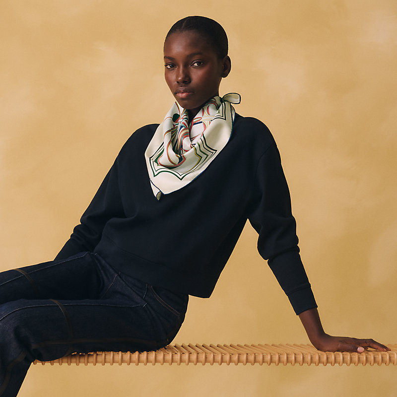 轻盈、大胆和无穷无尽的俏皮感在方巾中交织碰撞,让自己沉浸于质感迷人的丝绸之中。以多变、创意和俏皮的方式佩戴70方巾,展现时尚摩登而轻松随性的风格。