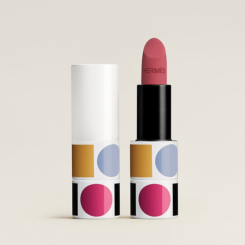 由皮埃尔·哈迪(Pierre Hardy)设计的漆彩金属唇膏管,饰以爱马仕经典藏书章,焕新演绎构图中最本质的两种形状:圆与方。这两种图案交错环绕于唇膏管之上,形成引人入胜的错视幻象,尽展无尽构图之美。