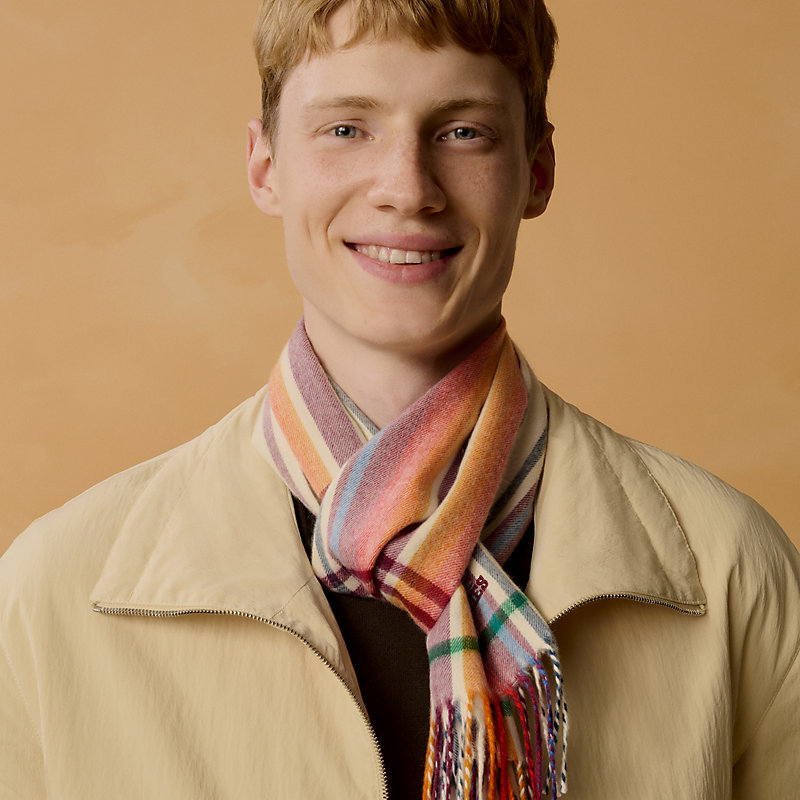 山羊绒围巾(100%山羊绒)。这款精致小巧的方巾以超柔软山羊绒精心织就,饰有隽永的格子花呢图案,并采用低调雅致或明快活泼的配色重新演绎。