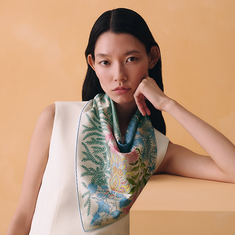 轻盈、大胆和无穷无尽的俏皮感在方巾中交织碰撞,让自己沉浸于质感迷人的丝绸之中。以多变、创意和俏皮的方式佩戴70方巾,展现时尚摩登而轻松随性的风格。