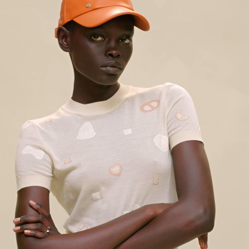 這款作品從"Candy Libris"圍巾汲取靈感,以天馬行空的可愛風格詮釋愛馬仕的標誌性元素,包括馬蹄鐵、騎士帽以及"Chaine d'Ancre"錨鍊圖案。