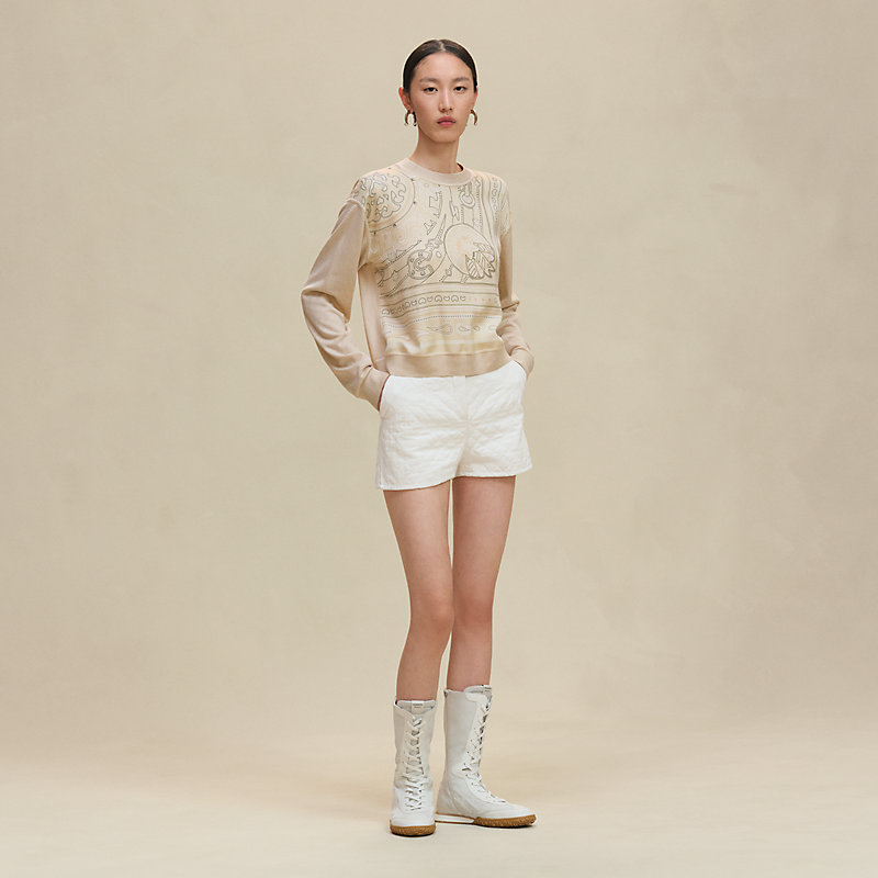 这件服装所使用的面料经过悉心挑选。为使衣服的品质持久如新,我们建议您阅读缝在衣服内里的保养说明标签,并将衣服交给专业人员或爱马仕专卖店进行保养。如有任何问题,请通过电话或点击“联系我们”以电子邮件的形式与我们客服联系,您也可以直接前往我们的专卖店垂询。