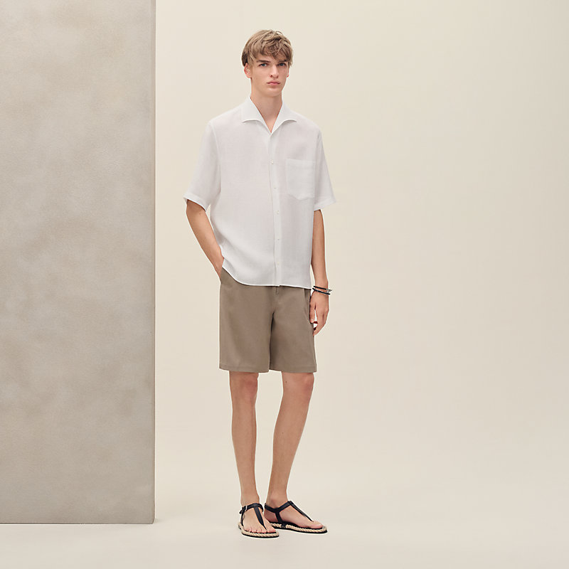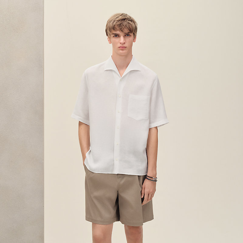 纯色亚麻直筒短袖衬衫(100%亚麻)。- 鲨鱼领- 纯珍珠母贝纽扣- 正面口袋正常版型,请选择您的常规尺码。