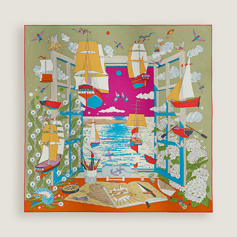 海边的绣球花、如细小的降落伞般随风飘去的蒲公英花、掠过蓝天的燕子以及连成星座的繁星,共同环绕着由迪米特里·利拜申科(Dimitri Rybaltchenko)设计的这扇诗意书窗。将带有波浪般螺纹的海螺壳贴近耳畔,便能听见大海的声音。令人沉醉的浪涛声历历在耳,召唤我们奔赴浩瀚海洋。鼓满风帆的卡拉维尔帆船载着我们御风而行,驶向他方,开拓探险。
