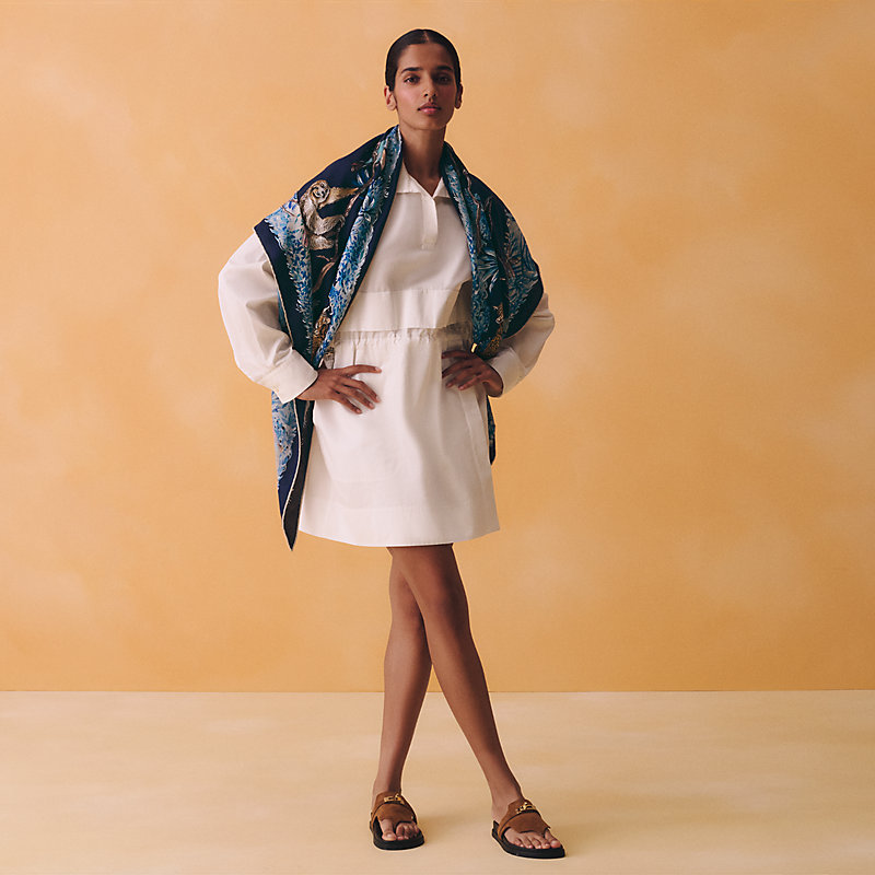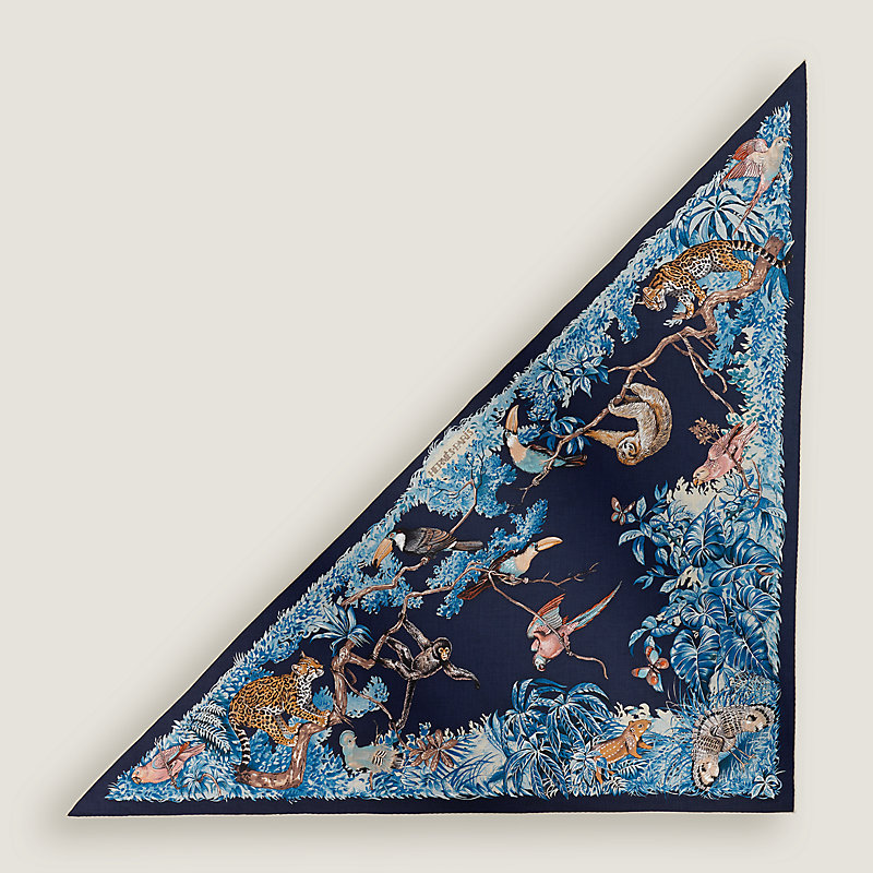 南美洲赤道地区拥有极其多样的动植物物种,无疑是地球上多样性最丰富的生态宝库之一。对于满怀热忱的博物学家、才华横溢的插画家和爱马仕的亲密合作伙伴罗贝尔·达勒(Robert Dallet)而言,这里是取之不尽的灵感源泉。优雅的猎豹、灵巧的猴子、色彩斑斓的金刚鹦鹉、巨嘴鸟及长尾小鹦鹉在这片野生热带丛林的三角冠盖下嬉闹游戏。