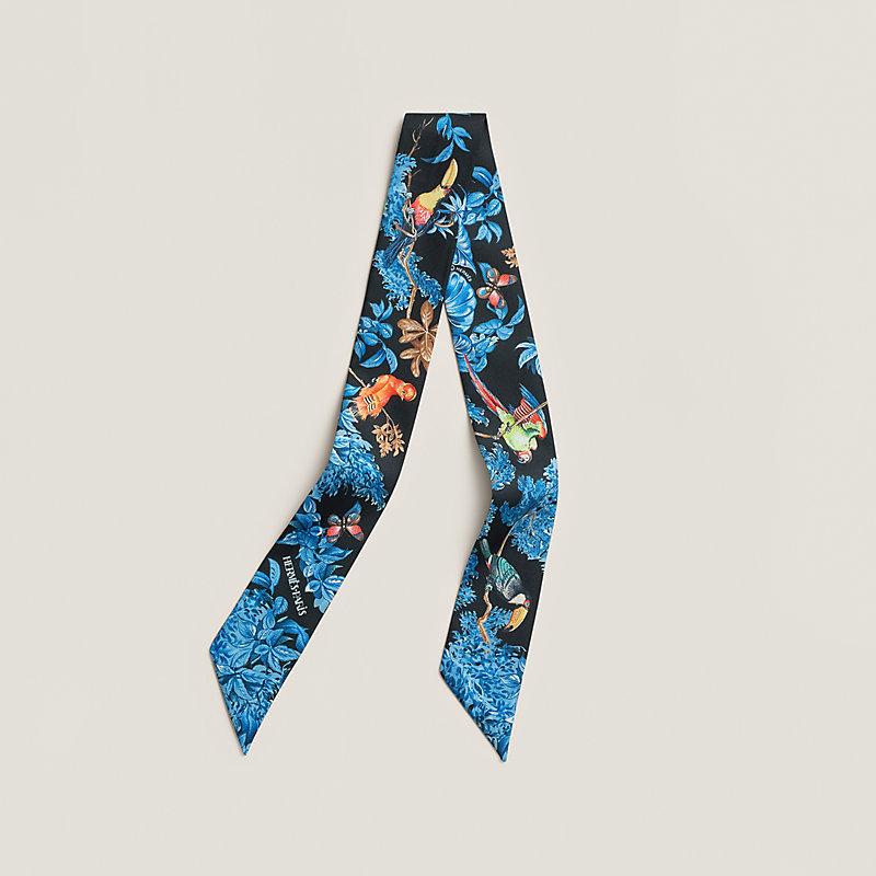 “赤道丛林”Twilly小丝巾, 黑色/蓝色/多色拼接