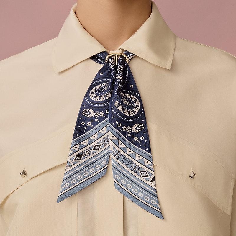 浅金色Twilly小丝巾扣。此小巧配件可轻松扣绕于方巾之上,巧妙变换丝巾佩戴方式。适用于Twilly小丝巾和45方巾。