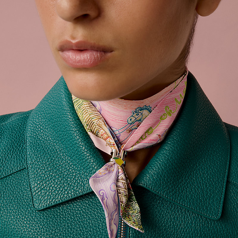 镀钯黄铜Twilly小丝巾扣。此小巧配件可轻松扣绕于方巾之上,巧妙变换丝巾佩戴方式。适用于Twilly小丝巾和45方巾。