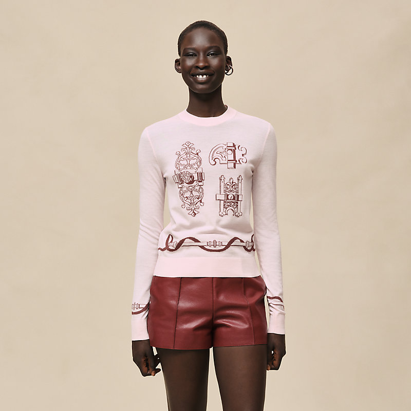 嵌花“铁饰”提花图案羊毛长袖套头衫(96%羊毛,3%锦纶,1%氨纶)。