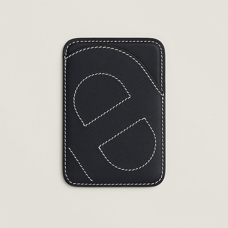 作品以经典马鞍针法缝线打造标志性的“锚链”造型。 这款卡包采用Apple的MagSafe技术,可通过磁体吸附到iPhone背面。