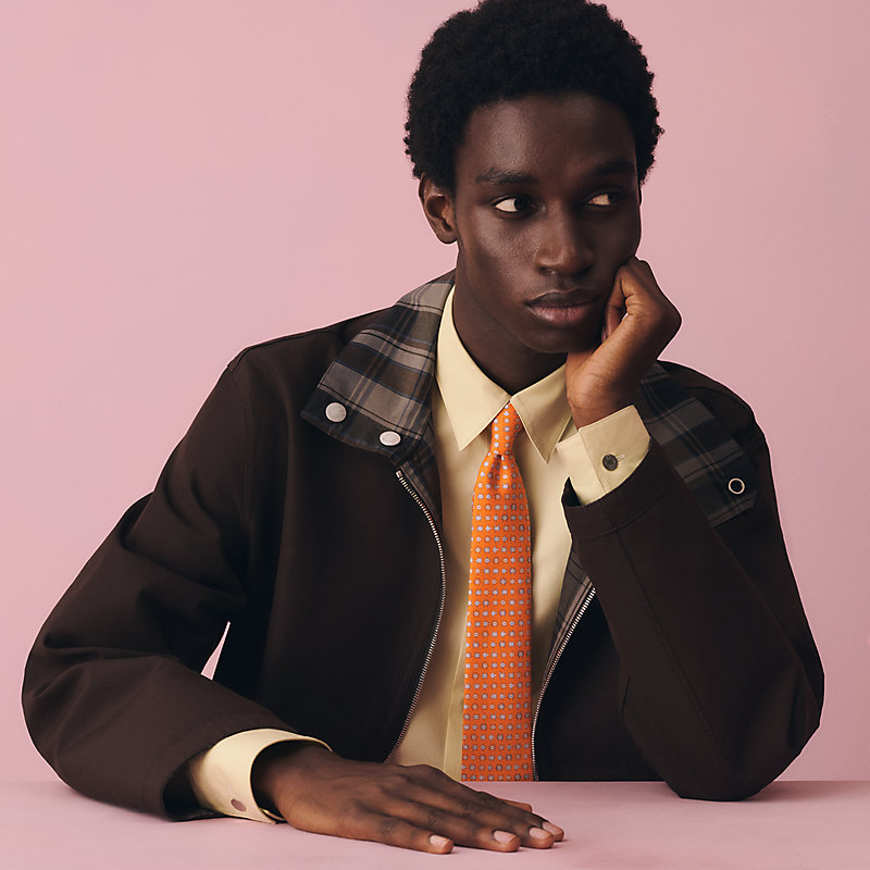 手工缝制斜纹真丝领带(100%桑蚕丝)。这件蕴含创意巧思的作品饰有令人惊喜的细节,佩戴这款精美领带,让一切皆有可能。仅有一条规则:享受佩戴它的乐趣!自1949年以来,位于法国里昂的爱马仕工匠以精湛技艺,精心制作爱马仕领带。/自1949年以来,爱马仕领带由位于法国里昂的工匠以精湛技艺制作而成。