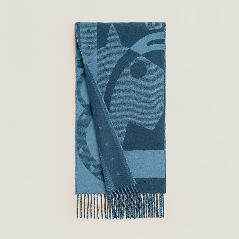 山羊绒围巾(100%山羊绒)。 这款双色山羊绒围巾采用提花编织工艺,由西里尔·戴肯(Cyrille Diatkine)设计的“预备,跑!”图案赋予其鲜明的几何视觉效果。