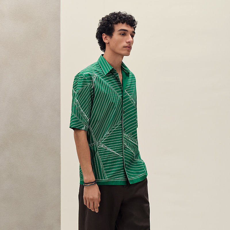 棉质和真丝直筒短袖衬衫,饰有“风之语唯美版”图案印花(55%棉,45%桑蚕丝)。
