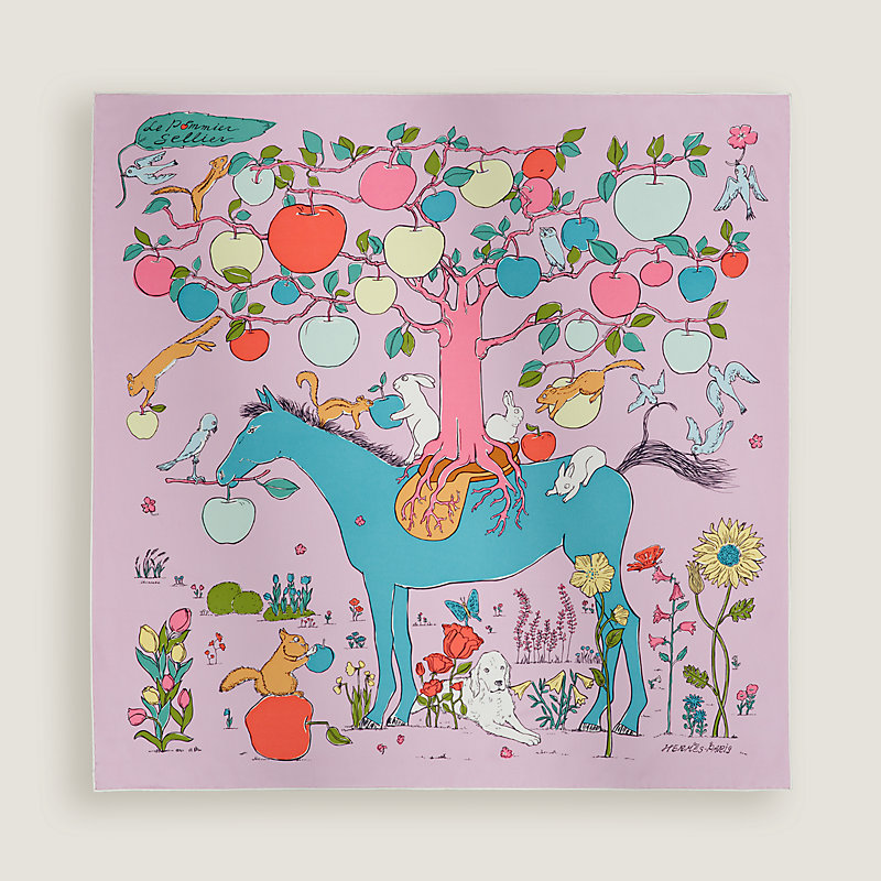 圣奥诺雷福宝大道24号的屋顶露台上,数十年前由让-路易·杜马(Jean-Louis Dumas)种下的苹果树茁壮生长。在这座由信介河原(Shinsuke Kawahara)设计的屋顶花园中,结着酸甜果实的苹果树扎根在披挂着马鞍的马背上,而马是爱马仕自1837年以来的第一位客户。伴随着四季更迭,鞍具制造商爱马仕的马术根源以同样的热情不断激发品牌设计师的创作灵感,正如画中五颜六色的苹果,滋养着这座奇幻春日花园中的兔子、鸟儿和松鼠。