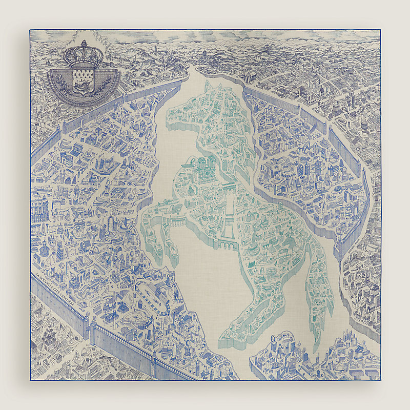 作品灵感源自17世纪德裔瑞士雕版师和出版商老马特乌斯·梅里安(Matthäus Merian the Elder)创作的一幅巴黎鸟瞰版画。奥克塔夫·马尔萨勒(Octave Marsal)以版画原作为灵感,重新构筑出一座充满欢乐气息的都城。艺术家信手勾勒出塞纳河的蜿蜒水流、连绵起伏的城墙,以及梦幻之城的建筑群,创造出一座全新的“马术之城”,一匹威严的骏马雄踞中央,统御全局。圣母院屹立于小岛之上,静静守护着整座城市;马鞍、马勒及马术奖杯则在阡陌街巷构成的迷宫中捉迷藏。或许有一天,奥克塔夫·马尔萨勒(Octave Marsal)的骏马会优雅跃起,跨越河流,在两岸之间架起一座连接过去与现在的桥梁。