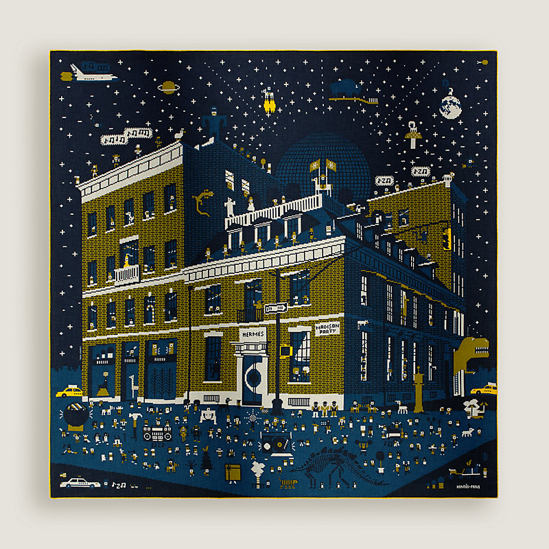 纽约以优雅驰名的麦迪逊大道上正发生什么? 爱马仕专卖店内热闹非凡,提波尔·卡尔帕特(Tibor Kárpáti)邀请一众社会名流齐聚于他的像素派对。迪斯科明星、说唱歌手、运动员、牛仔,甚至一只刚从博物馆逃出来的恐龙,都在巨型迪斯科舞球下尽情热舞。舞球璨耀生辉,点亮这个难忘的夜晚。从屋顶到阳台,再到人行道,专卖店的每层楼都有专属的舞池。狂欢派对,热力四射!