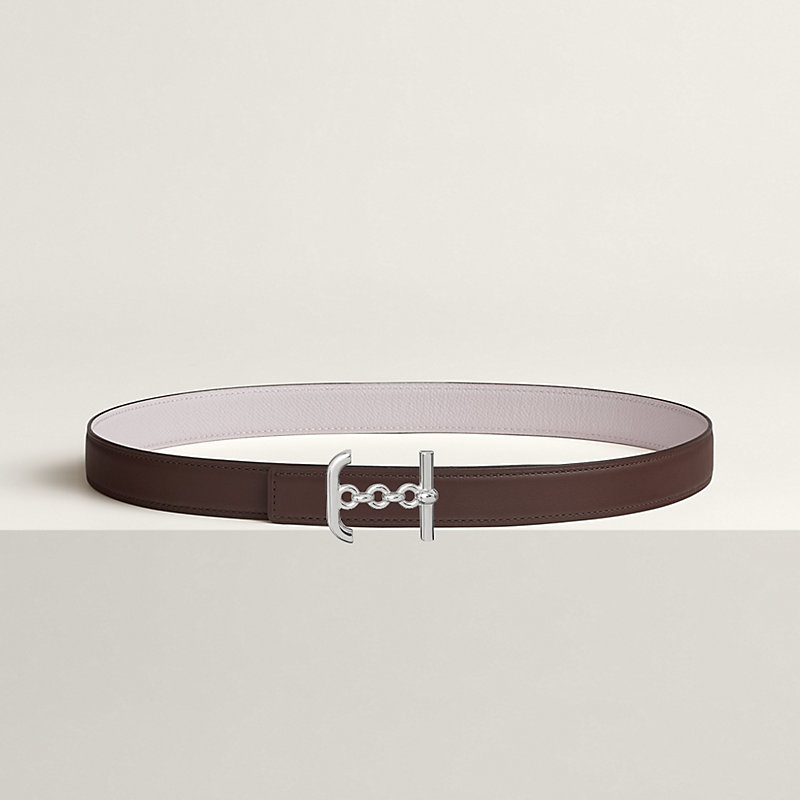 金属皮带扣。这款皮带扣的灵感源自爱马仕的航海世界,象征精致细腻的船锚。金属质感: 镀钯 & Swift和Epsom小牛皮双面皮腰带。