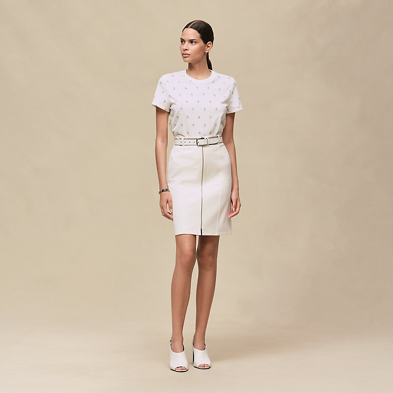 这件服装所使用的面料经过悉心挑选。为使衣服的品质持久如新,我们建议您阅读缝在衣服内里的保养说明标签,并将衣服交给专业人员或爱马仕专卖店进行保养。如有任何问题,请通过电话或点击“联系我们”以电子邮件的形式与我们客服联系,您也可以直接前往我们的专卖店垂询。