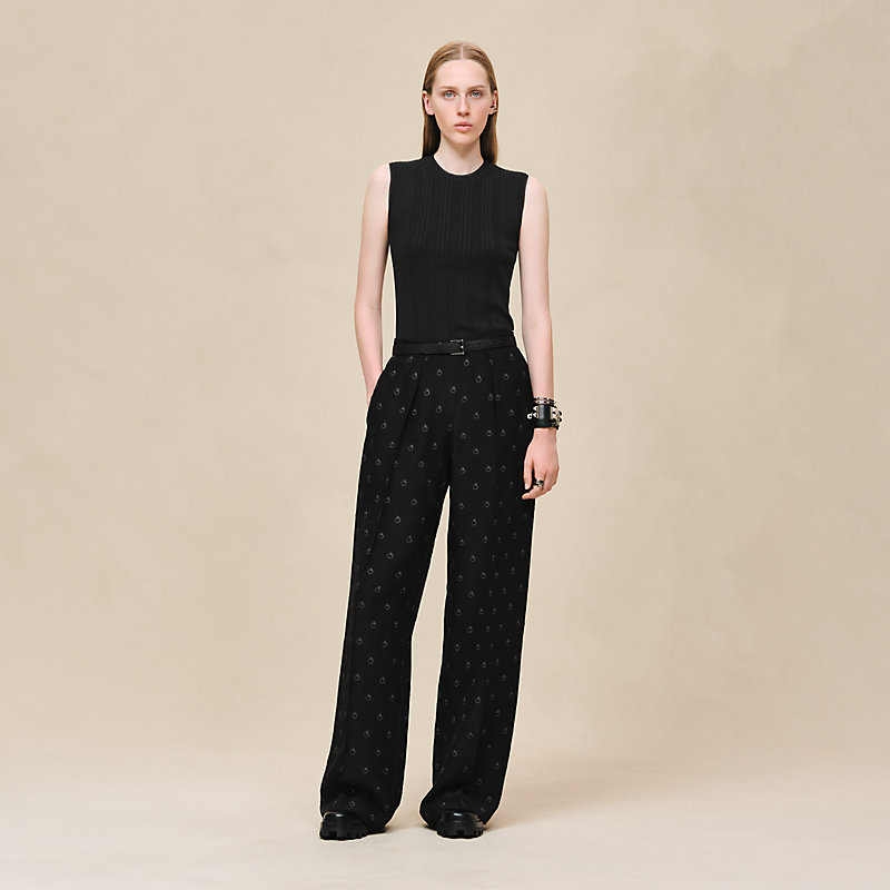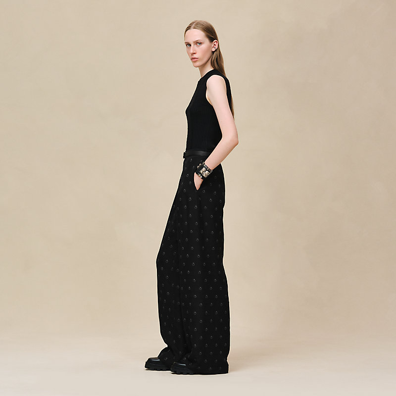 “Aux Champs en Fleurs”图案印花提花真丝长裤,饰有圆环图案和铆钉(100%桑蚕丝)。