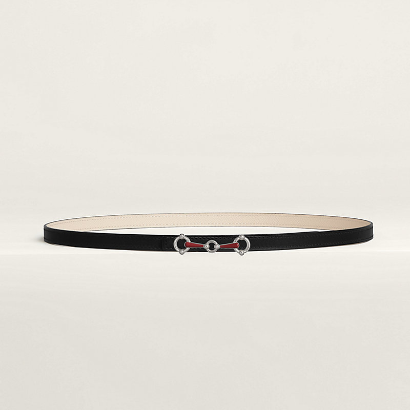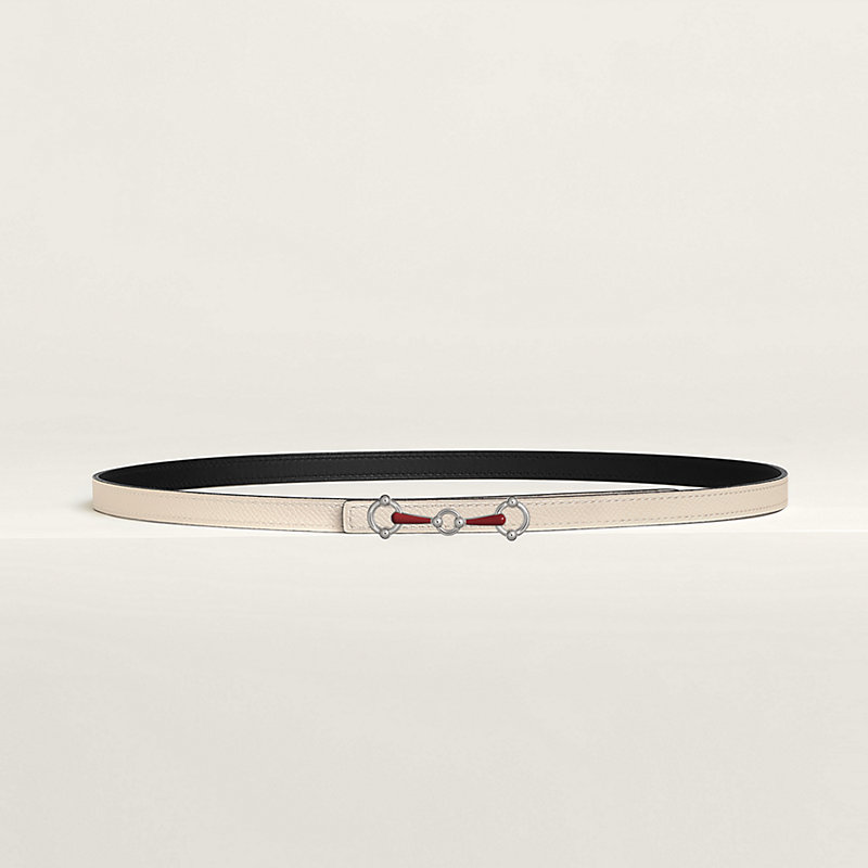 漆艺金属皮带扣。这款皮带扣线条优美,演绎马衔造型,融入爱马仕深厚的马术世界。马衔的两条连接杆采用立体漆面工艺,优雅呈现缤纷效果。金属质感: 镀钯 & Swift和Epsom小牛皮双面皮腰带。