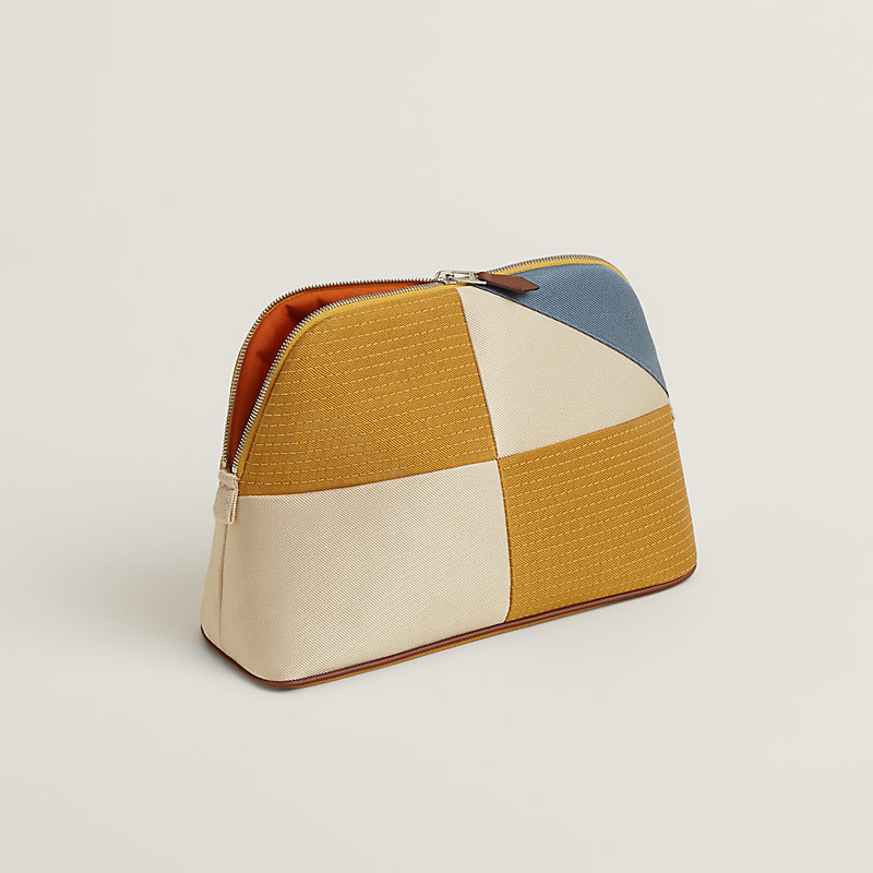 Bolide收纳包沿袭1923年专为热爱驾车出行和长途旅行人士设计的Bolide包袋造型。收纳包采用斜纹真丝制成,饰有多色棋盘格纹,致敬赛马骑师在比赛时所穿的彩衣图案。适合出行携带,或收纳洗漱用品。