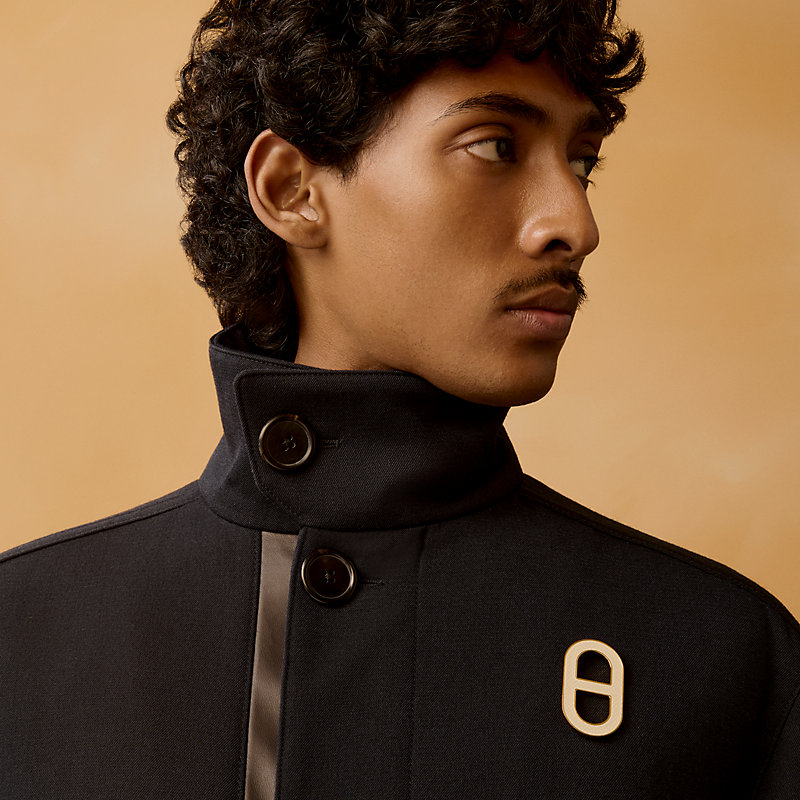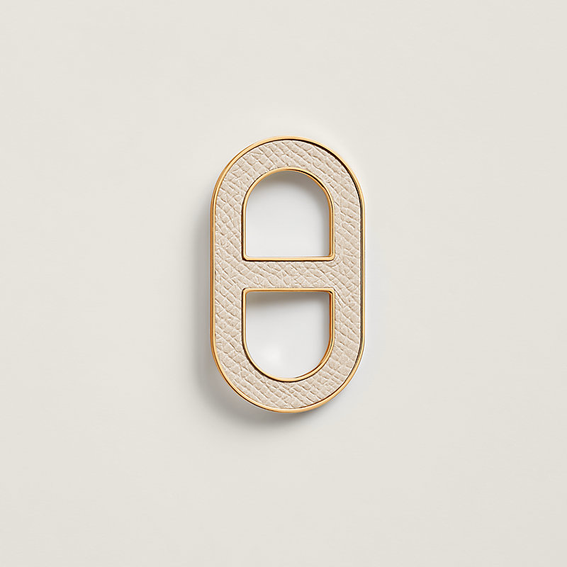 Epsom小牛皮和金属胸针。这款胸针重新演绎爱马仕标志性链节图案,饰以皮革嵌饰。